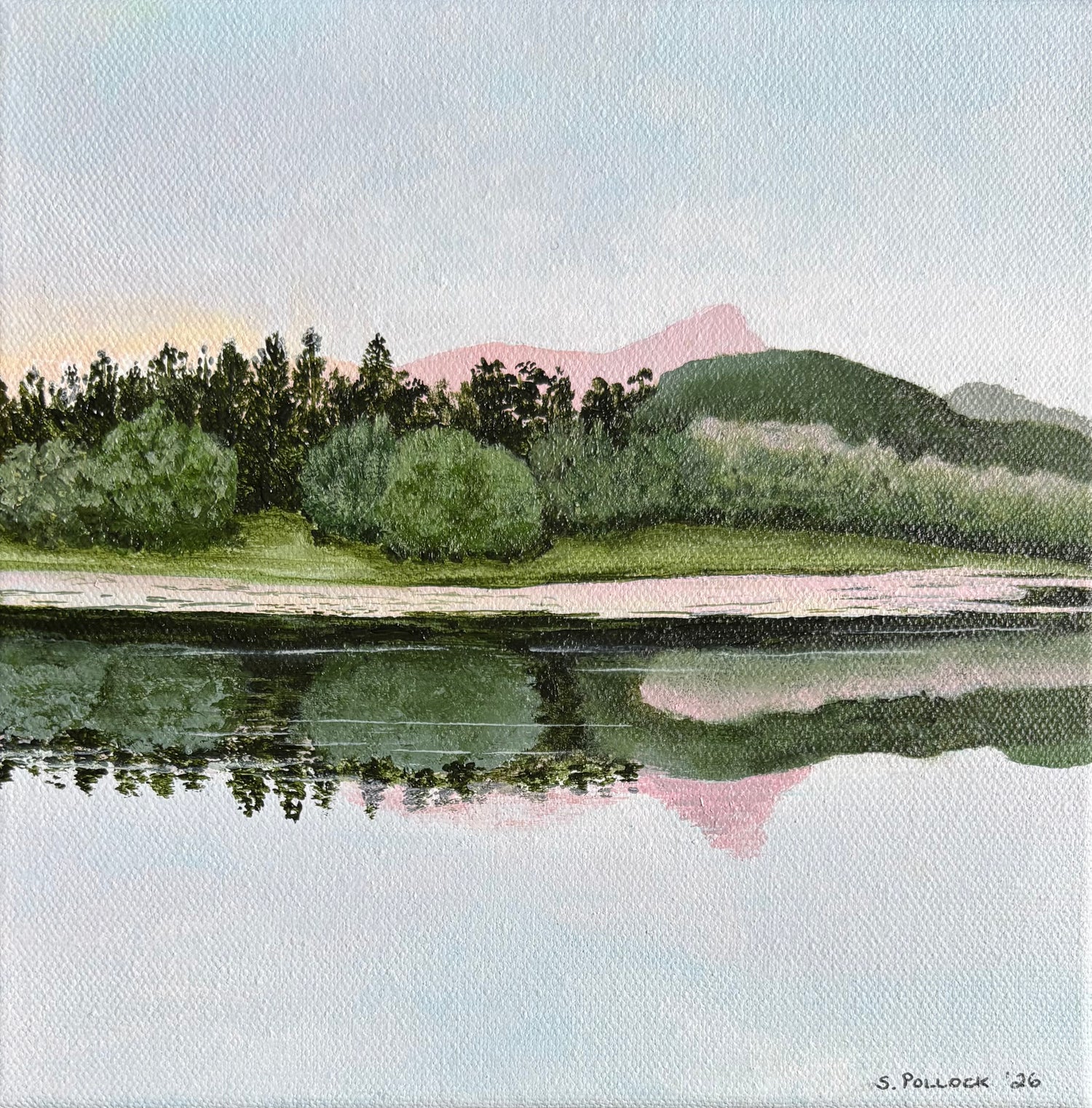Sabene Pollock’s work is grounded in observation, capturing moments of stillness within the landscape through a soft and considered approach. Working with a gentle sensitivity to light, colour, and composition, her paintings reflect a deep appreciation for the quiet beauty of the natural world.