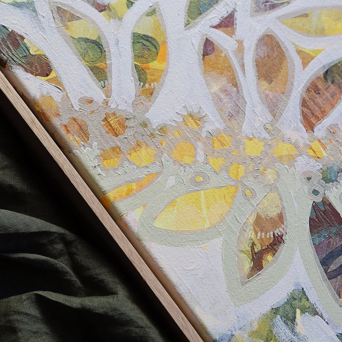 This acacia complanata, or long-pod wattle bush was found near Jacky's property just outside of Brisbane. The colour palette has been inspired by the golden blossoms and the smooth foliage of the native wattle found in south east Queensland and northern New South Wales.