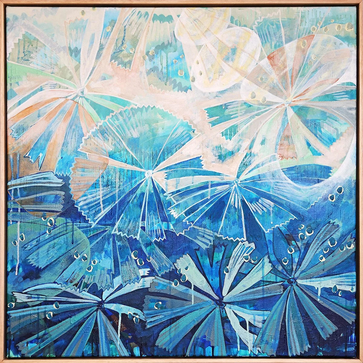Medium: Acrylic paint and pen on canvas framed in oak