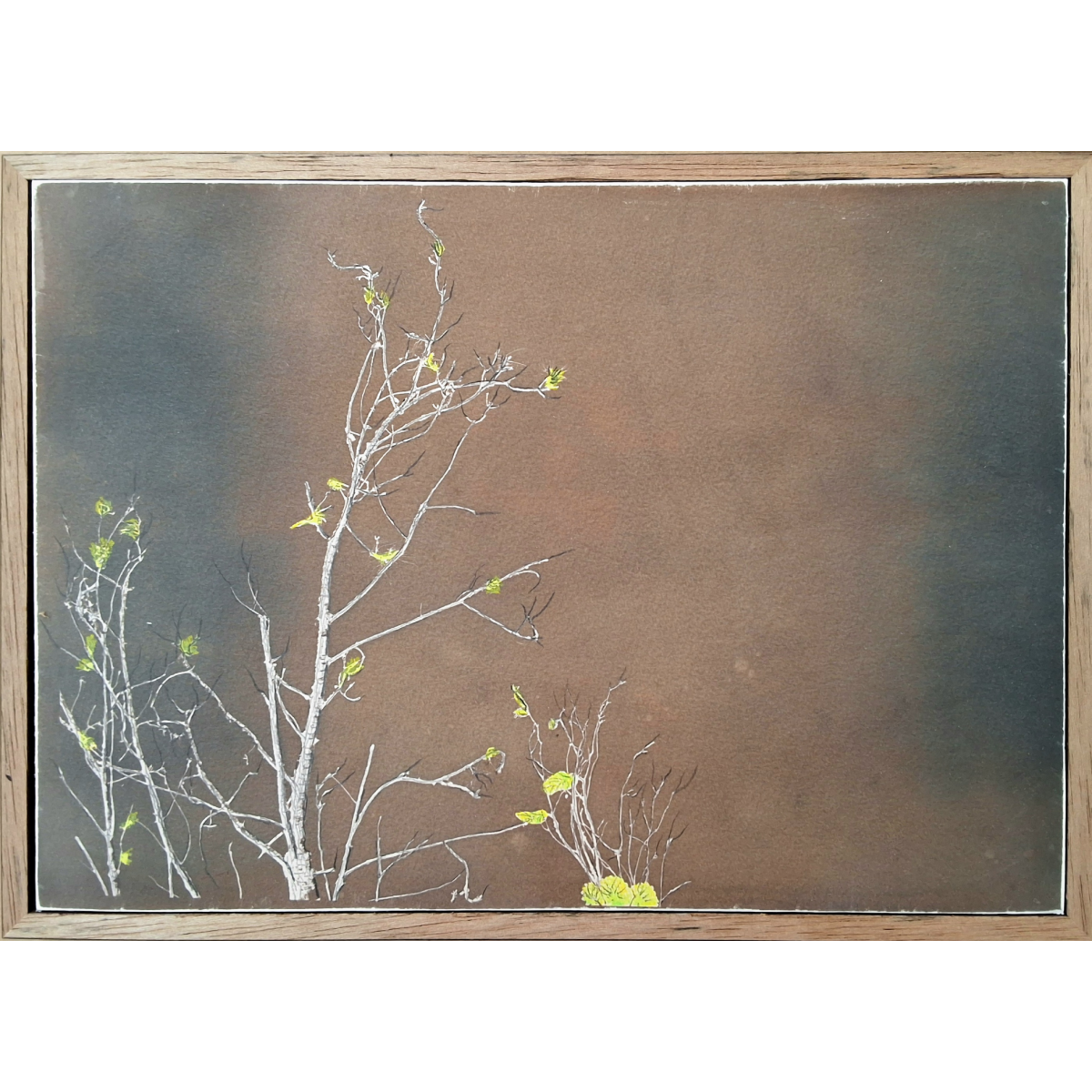 Medium: Traditional cyanotype print on watercolour paper using a digital negative, bleached and toned with green tea with hand drawn details, finished with cold wax