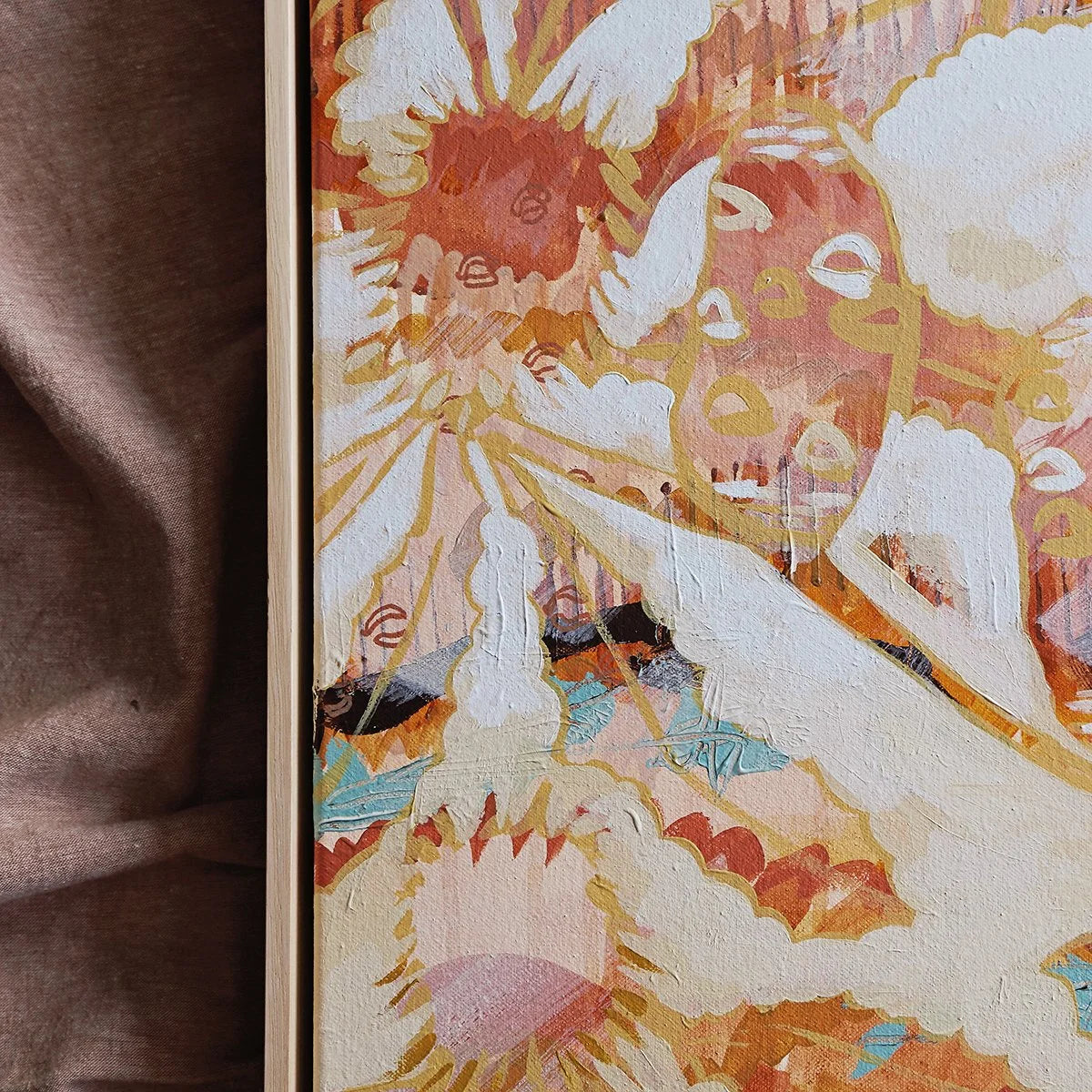 Medium: Acrylic paint and pen on canvas framed in oak