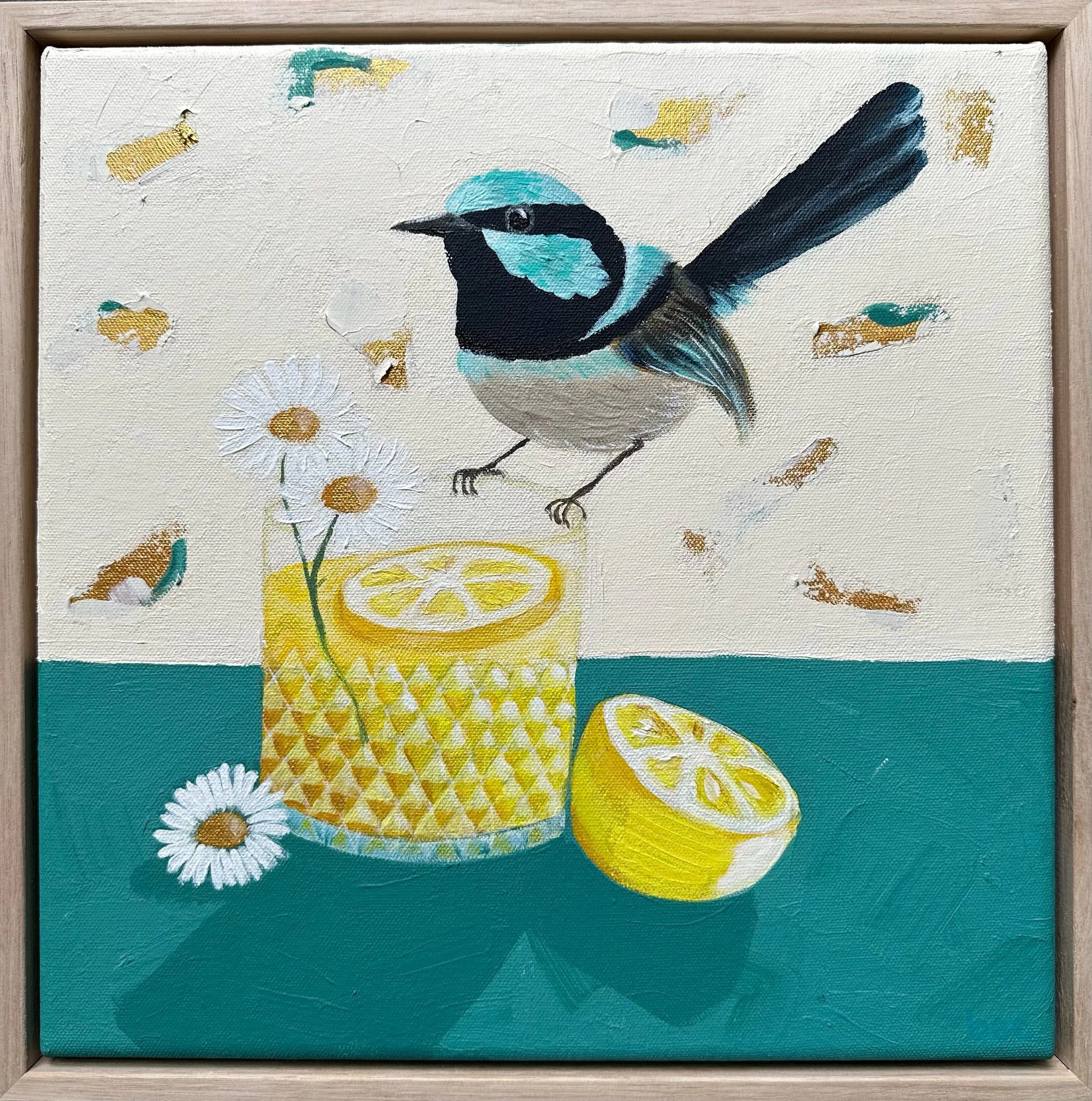 Medium: Acrylic paint on canvas, with oak frame